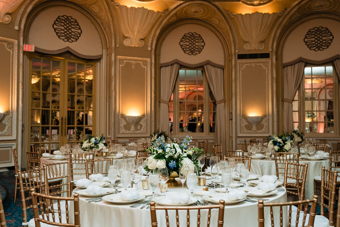Before you even get to your ballroom, you have to pass through Peacock Alley and the grand lobby. The lobby is famous for its “trompe l’oeil” sky ceiling and its marble floors.