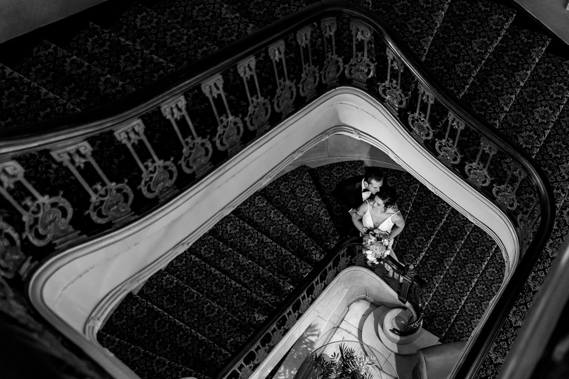 One of my favorite “theatrical” moments to photograph is a bride descending the iconic red-carpeted staircase for her first look. It is a high-drama, high-impact shot that perfectly captures the “Old World” prestige of the Fairmont. We also love using the long, gilded hallways for creative portraits where we can play with the reflections in the many mirrors.
