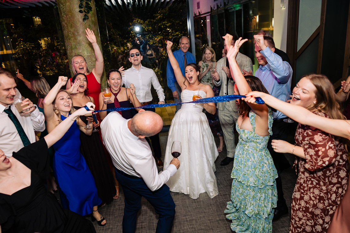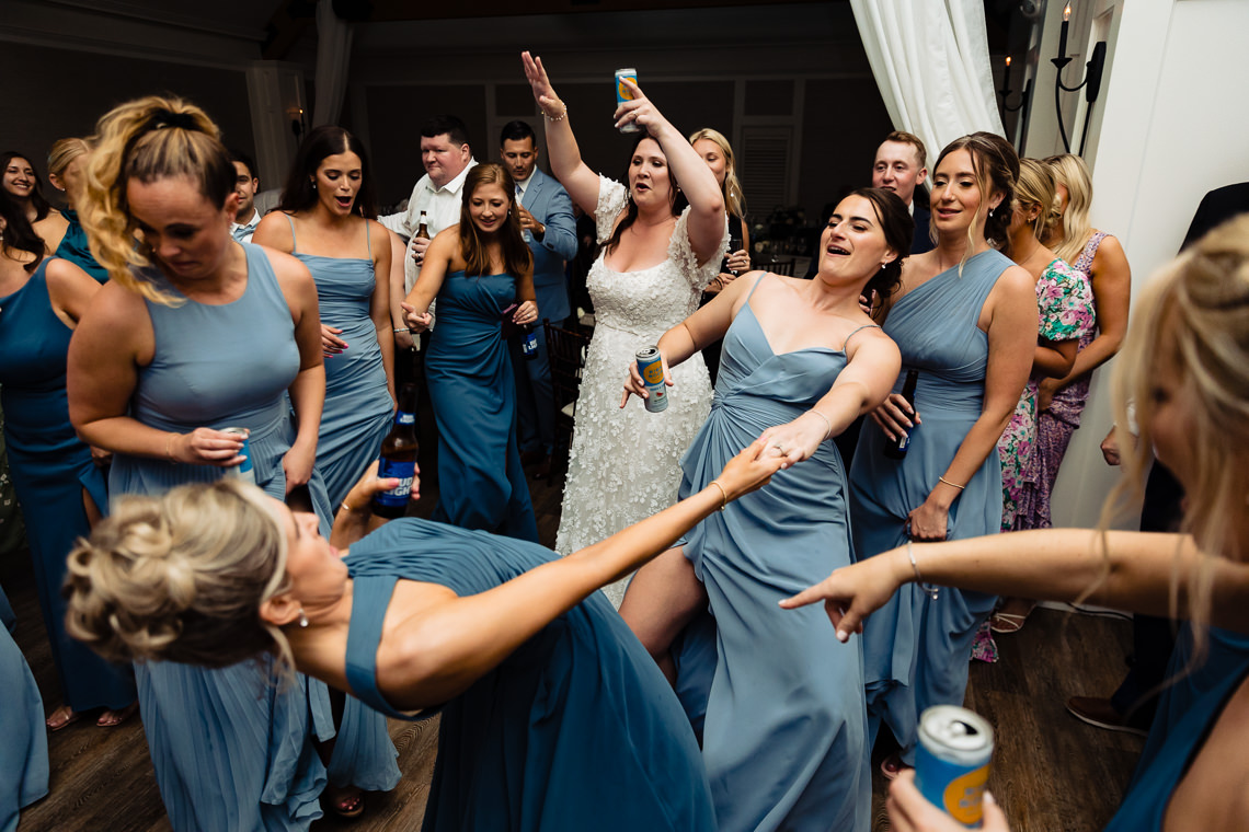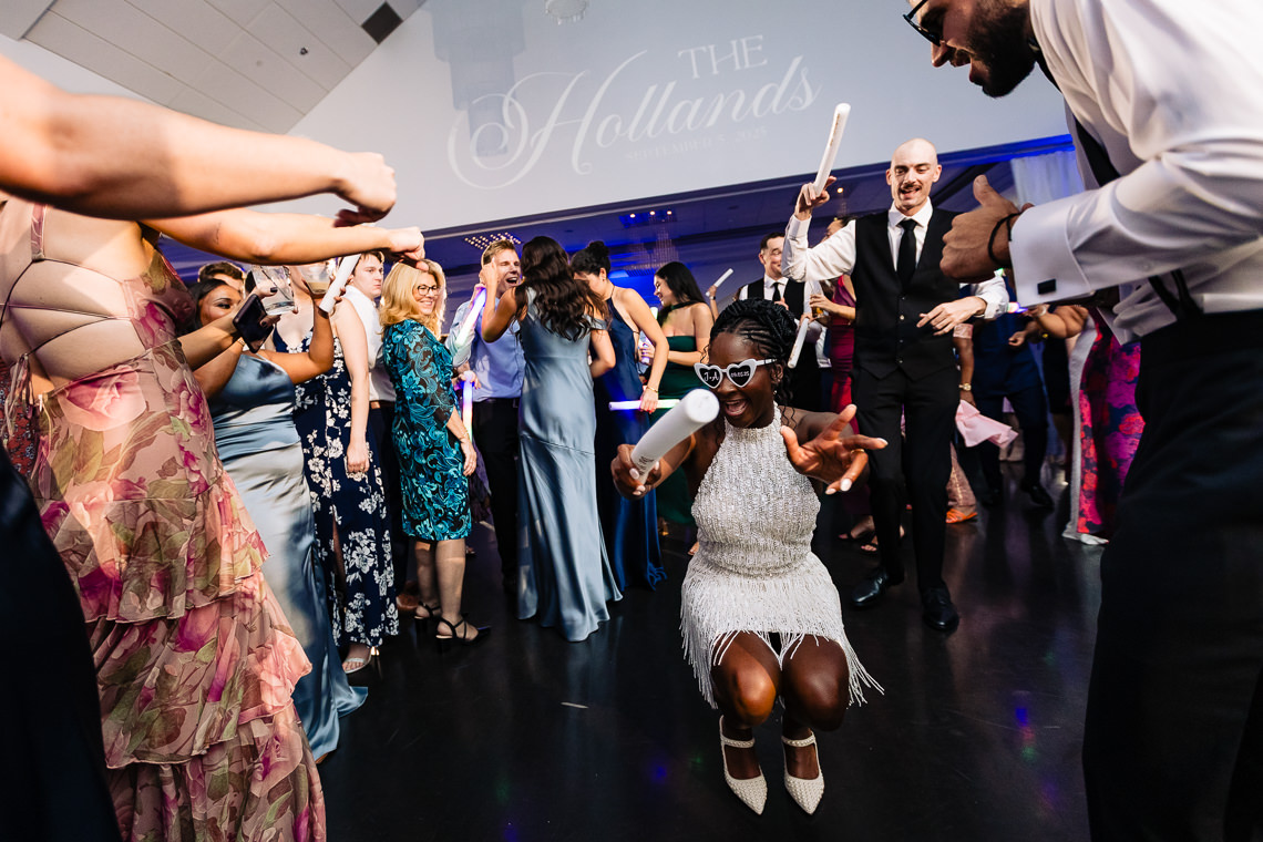 Most photographers show a few polite photos of people clapping. I want to show the sweat, the laughter, and the legendary moves. I’ve captured groomsmen balancing drinks on their heads, grandmas leading the “Conga” line, and plenty of shirts being swung like helicopters.